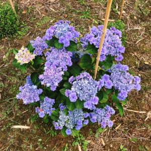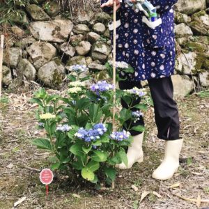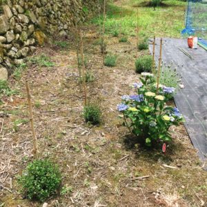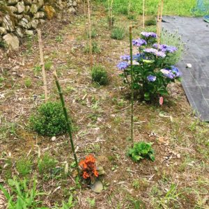 素人のやる事なので適当に切って土に挿しただけですが、母が簡単につくと言っていたので挑戦することにしました。場所は石垣の下で花畑の横並びにしました。半日蔭なのでアジサイにはぴったりでしょ?