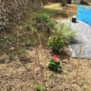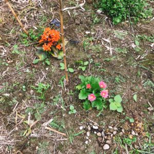今年の花はか弱そうなカランコエとガーベラなので荒れ地で根付くのか心配です。