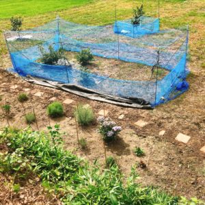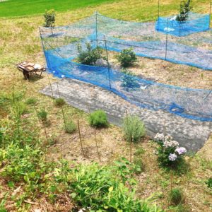 せっかく敷いた敷石ですが、この時期は雑草の勢いが強いので防草シートを被せています。