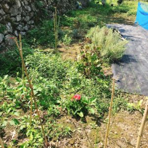私の花畑は山裾にあってしかも石垣がある方角は南東なので、一日の半分以上(午後2時くらいまで)が山の陰という環境のため一年中苔が生えてしまうんです😓