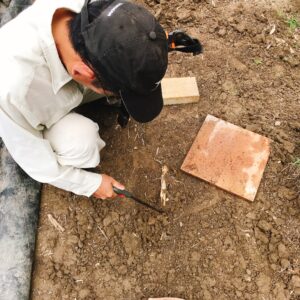 敷きたいところに竹の根っこが出てくるので夫に処理してもらう。