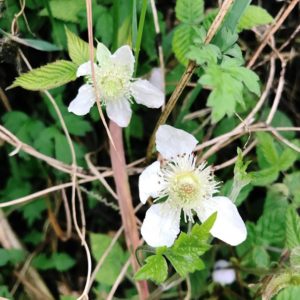 あちこちに野イチゴの白い花が咲いています。もう少し待てば赤くなった小さな果実を収穫する楽しみが出来そうです。
