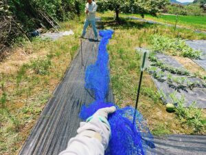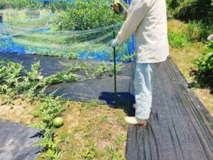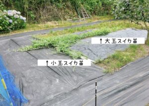 今回はこちらの2つの苗を植えたスイカ畑を覆うように張っていきます。