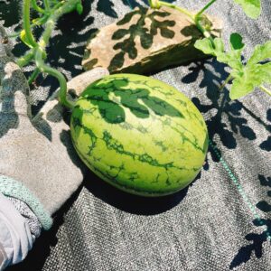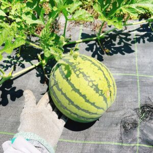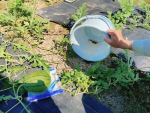 尿素は液肥(水で100倍~200倍に薄める)にして、スイカの株元に使用しています。