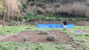 私が初めて農地を訪れたのは2018年5月なので、週末に通い始めて2年と半年が経過しました。ずっと農地の様子を撮っていた私ですが、全体像が把握できていないことに今更気付いたので、今回は大きな脚立を農地の隅に立てて高い視線から見渡してみました。