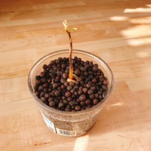 農地で芽を出したアボカドを持ち帰りハイドロカルチャーで育てます