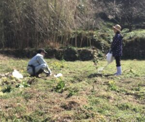 いつも通りに、穴を掘って肥料を蒔いて植えるだけの作業です。