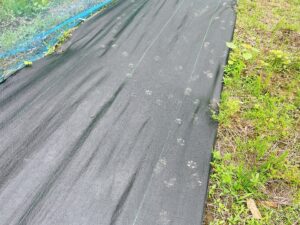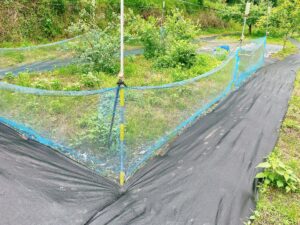ブルーベリーのネットの周りをぐるっとパトロールするかのように足跡🐾が残っています。