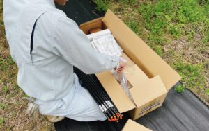 設置した当日は暑い日で、農地の真ん中で説明書を読みながら作業をするのは非常に体力を消耗しました。