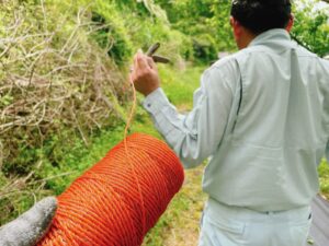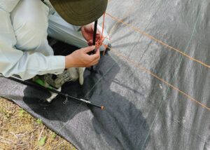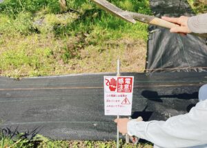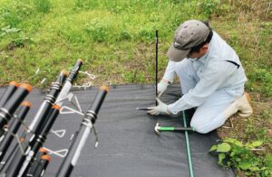 ここからは、夫婦で電気柵を設置した様子ですが、作業しながらの撮影なので「電気柵キット」の中身などを撮る余裕がありませんでした💦