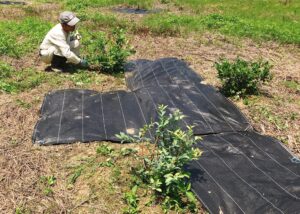 こちらは2019年7月の写真で、苗木の横に防草シートを敷いています。