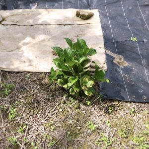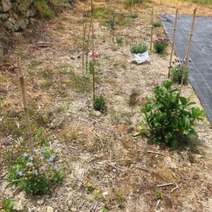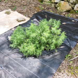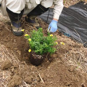 山裾に位置したこの花畑は太陽が午前中しか当たらず、午後は日陰になり土の表面にはコケが生えているんです。場所の選択をミスったことに気が付いたのでお花畑を移動させました。