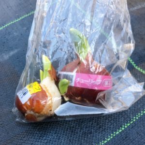 昨年もらって袋の中で芽が出てしまったチューリップの球根も農地に植えました。