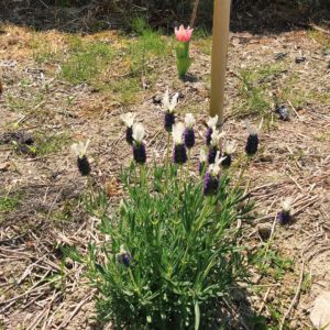 ラベンダーは低木植物で樹木という扱いになっているので果樹と同じように大きく成長するのを楽しめる事、蚊よけ効果がある事、そして種類によっては四季咲きもあり一年を通して農地に彩りを添えてくれると考えたからです。