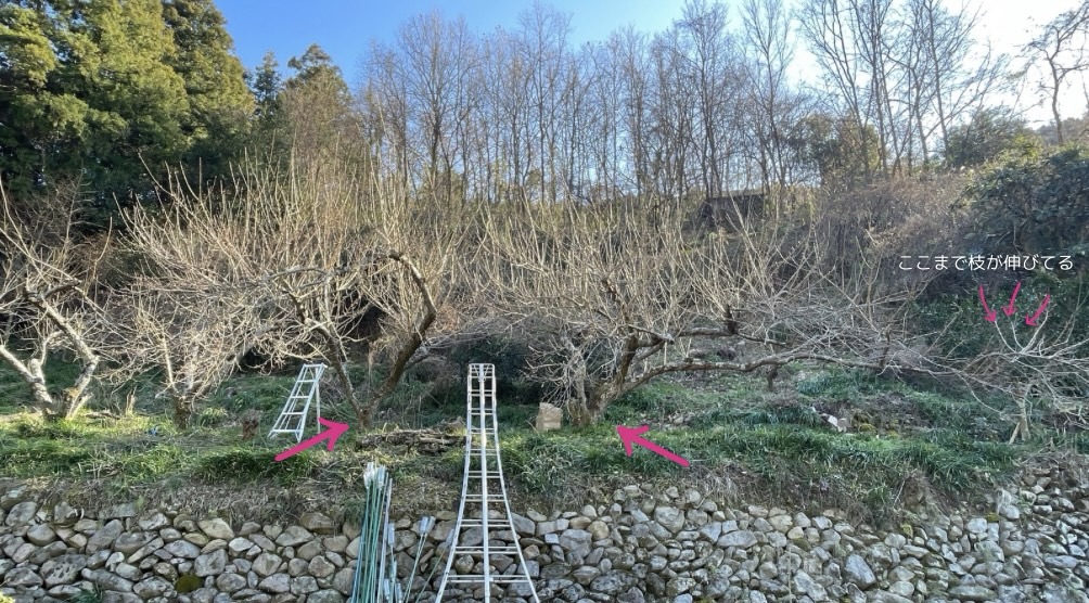 プロでもない〝にわか〟夫婦が、枝の選別をしながら剪定をした結果、たった2本の梅の木の剪定に約3時間を掛けていました😅