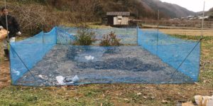 私は、イノシシかな?って思ったけど防鳥ネットにはイノシシが入ったらしき形跡はない。