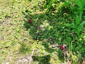 - 先週は熟れて落下したブルーベリーが地面にいっぱい転がっていたのに、昨日は足元に落ちている実は無かった。少しだけあった食べカスは赤いのでまだ酸っぱくて吐き出したのだろうな(笑)