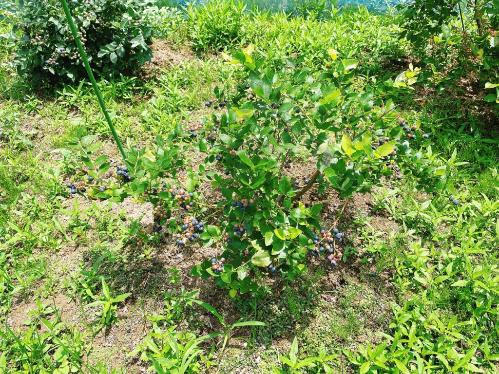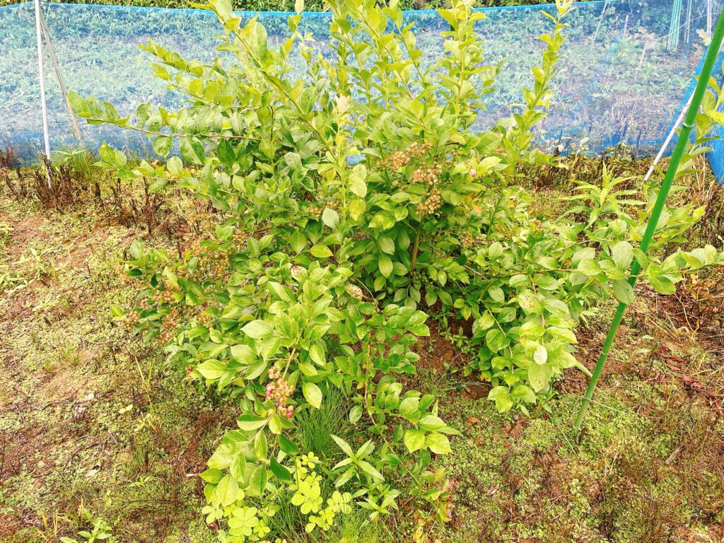 3年前に農地へ移植した3本のブルーベリーは夫が挿し木から育てていた苗木です。しかし夫は自分が挿し木をしたにも拘わらず、3本のブルーベリーの品種を覚えてないらしい。