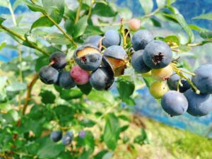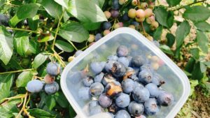 3品種のブルーベリーと裂果