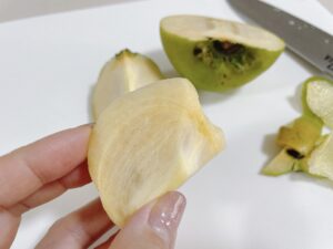 太秋柿はまだ色が青い(緑色)状態でも熟れているという特徴があるので、
