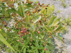 前回まで不明だったこちらのブルーベリーの品種が「シャープブルー」ではないかという話になっております。