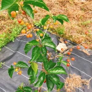 こちらは今年の春に植えて味見したけど酸っぱくて吐き出してしまったサクランボです。