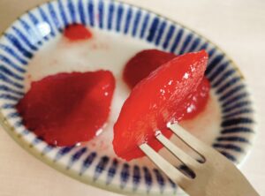 私は皮のままでも食べられる派ですが、皮を除いて果肉だけにすると更に甘さが際立ちます!
