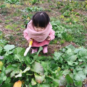 冬に農地で孫のお守りをした時の写真にも立派な葉っぱが写ってます(笑)