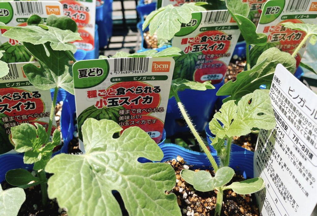 もたもたしていたらホームセンターの苗売り場から小玉スイカの苗は消えてしまいました(苗の植え付け時期は5月)