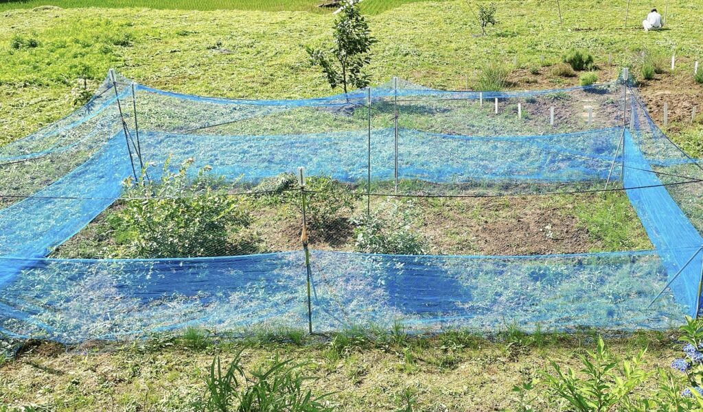 ここは害獣予防のネットを張っている場所という利点があるのですが小玉スイカは酸性土壌を嫌うそうなので成長が不安ではあります。