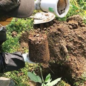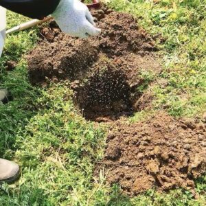 場所が決まったら穴を掘って土に苦度石灰を混ぜます。根鉢を崩さず根を傷めないように注意して植えるため穴はできるだけ深く掘りましょう。