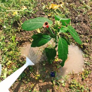 近くの川から汲んできた水をたっぷりあげて本日の移植作業は終了です✨