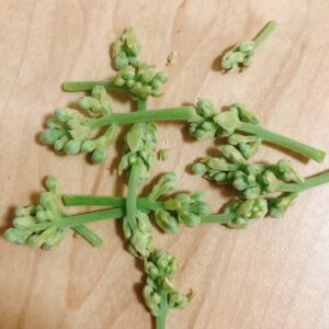 ※苗の為には早めの摘み取りが良いですが、間違わない為には多少花芽が伸びてから確実に取る方が良いです。花芽は指で摘んで根元からポキッと簡単にもぎ取ることが出来ます。