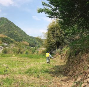 お昼をたべた後は作業開始です。夫は除草剤を農地の隅々まで丁寧に撒いて行きます。