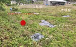 防草シートを敷くと、果樹の位置が良く分かるようになります
