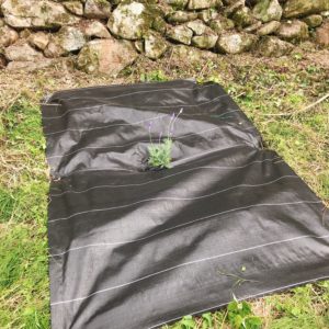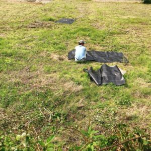 農地に到着するとカットした防草シートを夫が器用に敷いて行きます。私も少しお手伝いしました。