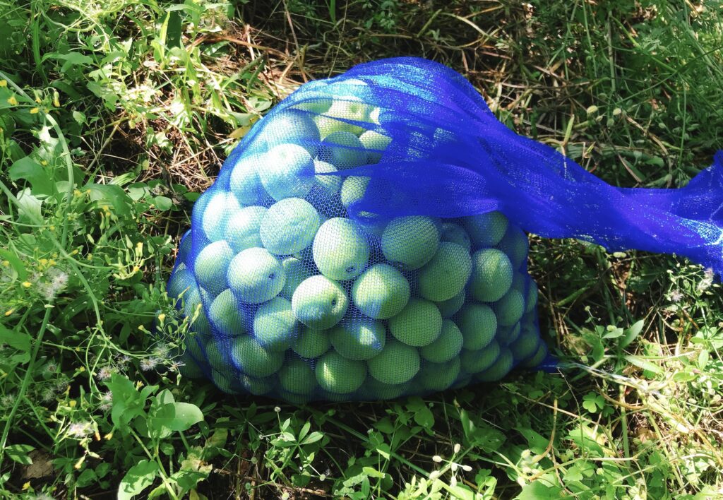 それを収穫ネットに入れたまま放置していたら黄色く色づきはじめてました。