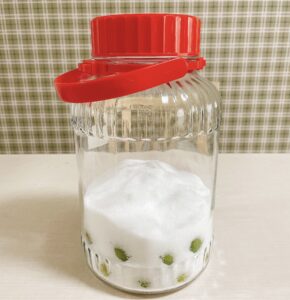 さぁ、次は梅ジュースが出来るまで毎日「瓶を振る」というノルマが待っている。
