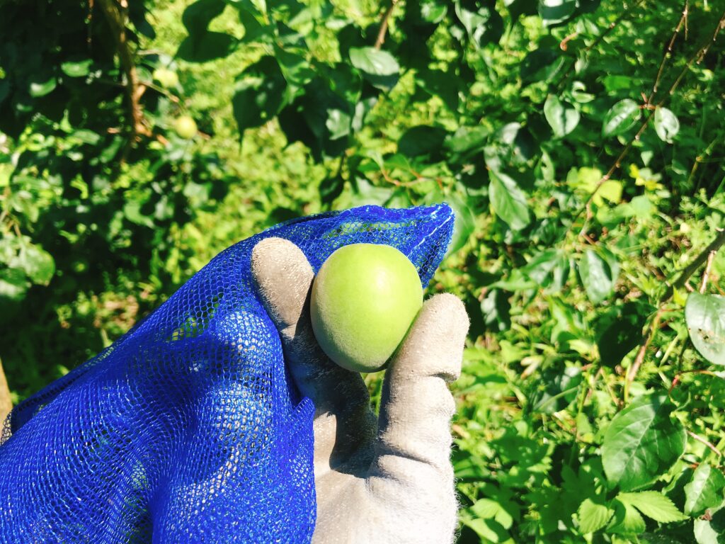 梅ジュース用にできるだけ大粒で傷のないキレイ目の青梅を選り分けます。