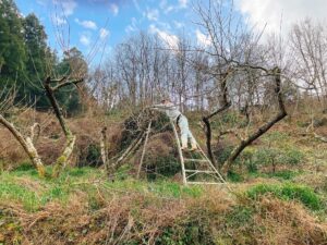 夫は昨年末(12/29)に引き続き梅の木の剪定を行っています。