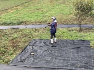 今日は苗の根元にびっしりと生えてきた草を抜いていきます。