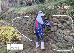 農地の石垣は、日陰にあるので苔(コケ)が石に蔓延っています💦