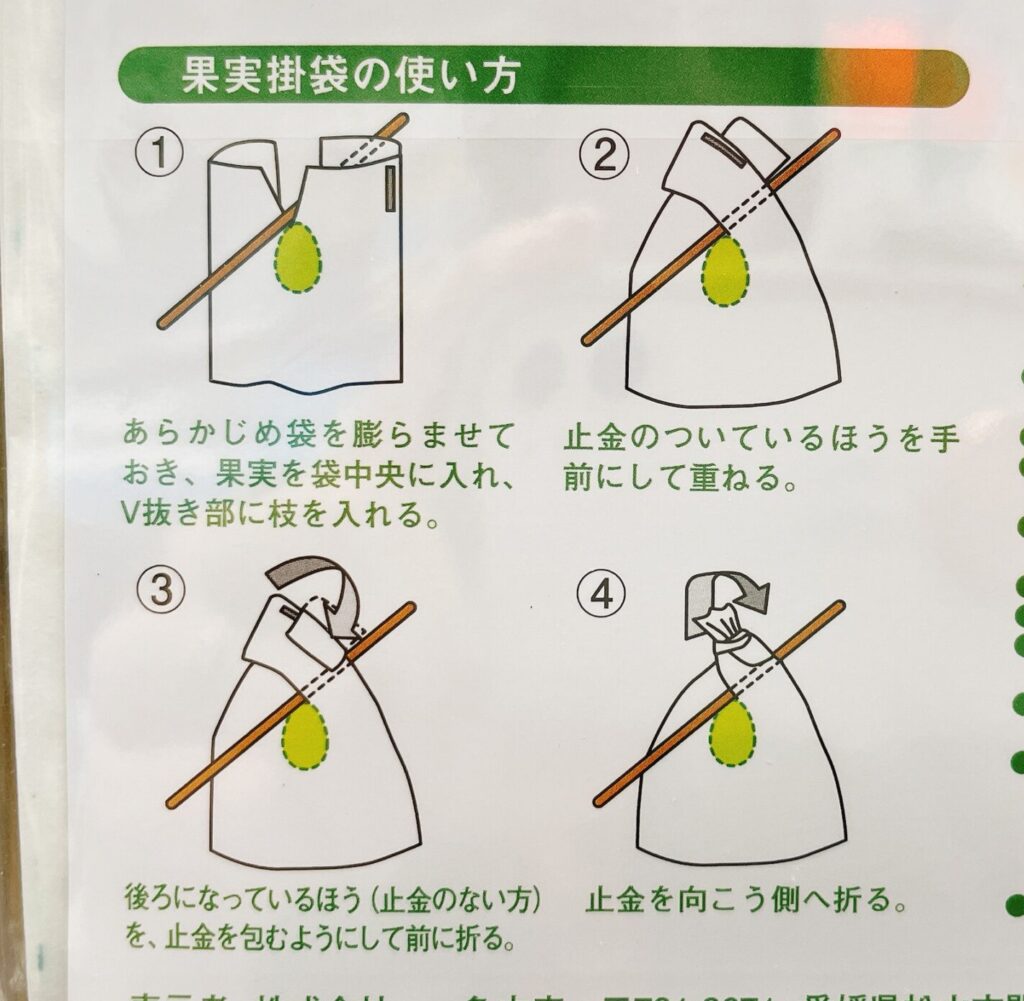 果実掛袋の使い方の説明を見ていると、やはりスモモにはこちらのタイプの方が良さそうです。