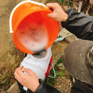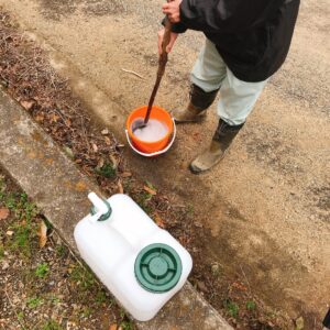 粉状態の農薬を水で溶いている姿が魔女が毒薬作ってるみたいです(笑)