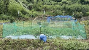 電気柵の見直しとスイカ畑の鳥よけネット
