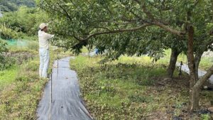 スモモの枝を切る