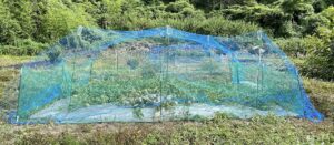 夫婦で端から一気にネットを被せて、ネットの中の高さを出すために支柱を3本ほど足しました。