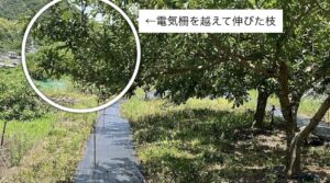 👇電気柵の外に出た枝をカット