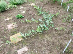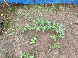 スイカはのツルはどっちへ延びるか予測不可能なので、農地へ行くたびに方向を修正が必須🤣