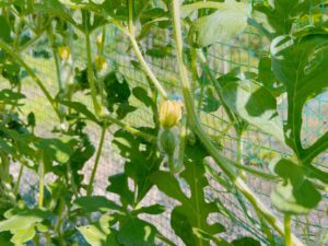 今回スイカのネットの中に害獣が入った形跡はなく、新たに肥大したスイカが2個ありました✨